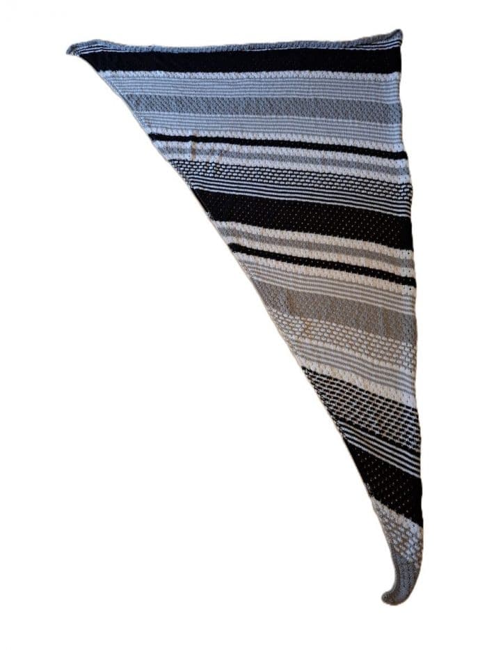 Die asymmetrische Form verleiht dem Tuch einen individuellen Charakter und sorgt dafür, dass es sich vielseitig binden und drapieren lässt – ob locker über die Schultern gelegt, modisch geschlungen oder als markantes Accessoire.