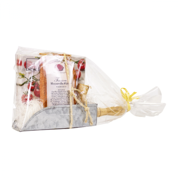 Zink Schaufel „Zitronenbutter“ Ein ausgefallenes Mitbringsel ist unsere „Zink Schaufel“, verwöhnen Sie die Menschen, die Ihnen wichtig sind! Inhalt: 100g Beutel Tomaten-Mozzarella Würzer Servietten „tomatoes“