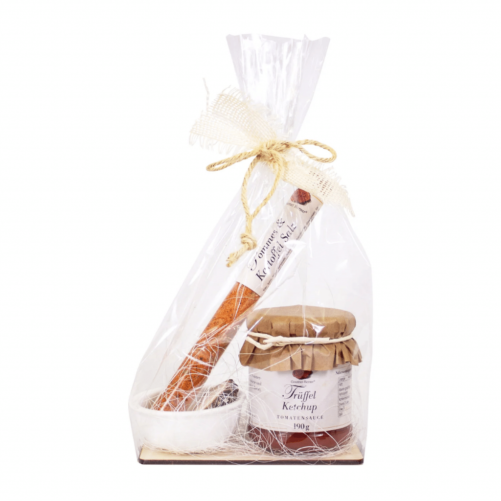 Präsentkarton „Italia“ Ein liebevoll zusammengestelltes Pastaset, das italienisches Lebensgefühl direkt nach Hause bringt. Der 500 g Beutel Spaghetti Tricolore sorgt für farbenfroße Genussmomente, während die 100 g Mischung Spaghetti all’olio eine aromatische Basis für die klassische Zubereitung mit Olivenöl und Knoblauch bietet. Abgerundet wird der Präsentkarton durch einen 40 g…