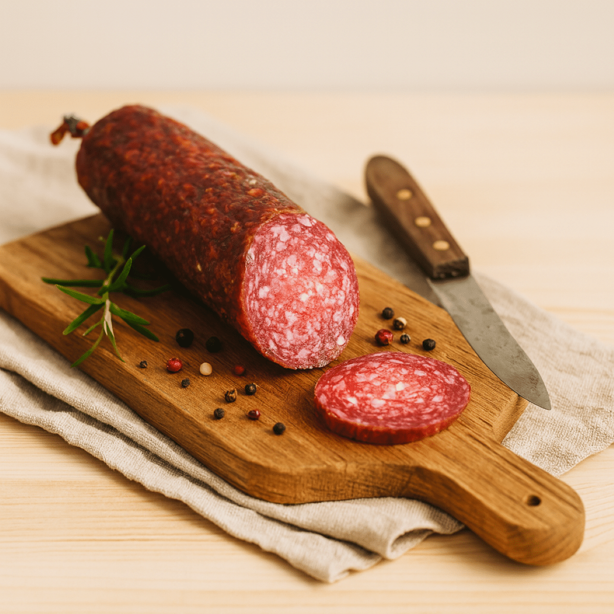 Entdecken Sie den besonderen Genuss unserer Salami mit feinem Wildschweinfleisch – hergestellt aus Wild aus der freien Natur, kräftig im Geschmack und unverfälscht in ihrer Herkunft.